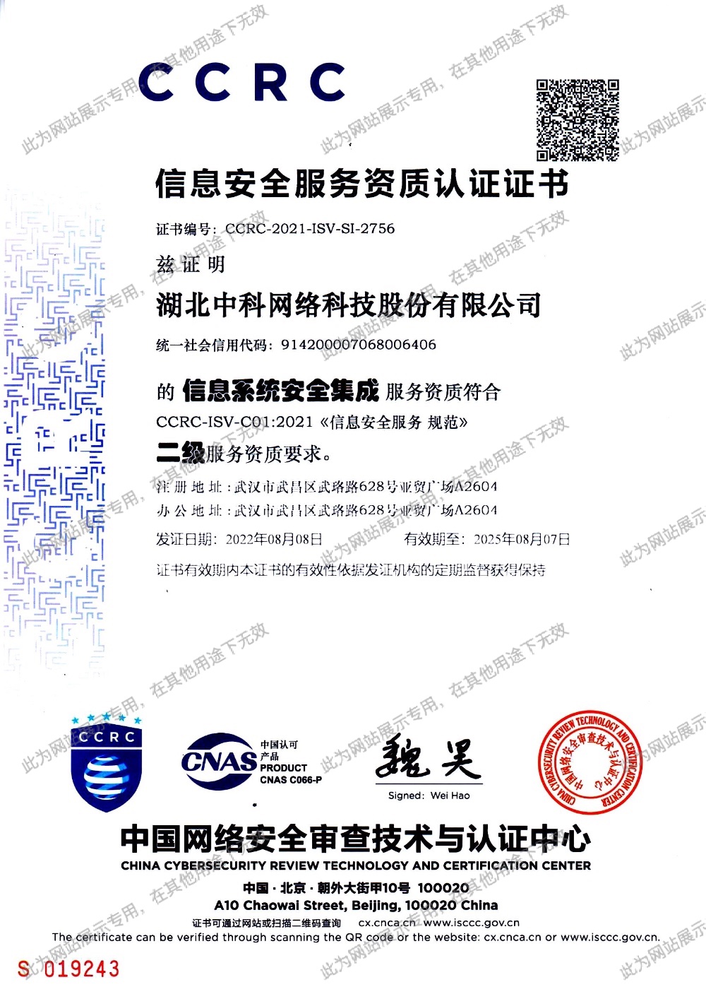• CCRC 信息系統(tǒng)安全服務(wù)二級(jí)資質(zhì)